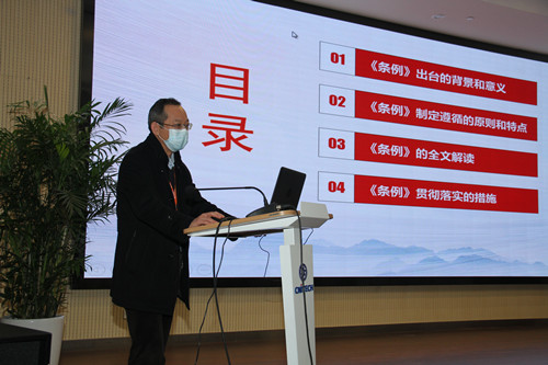 党委副书记、纪委书记李勇领学了《中国共产党重大事项请示报告条例》,他首先对《条例》出台的背景及意义、制定所遵循的原则和特点进行了解读,随后从总则、党组织请示报告主体、党组织请示报告事项、党组织请示报告程序、党组织请示报告方式、党员及领导干部请示报告、监督与追责等方面领学了《条例》全文,并指出要进一步搞好学习培训、细化落实措施、加强组织领导,强化《条例》的贯彻落实。