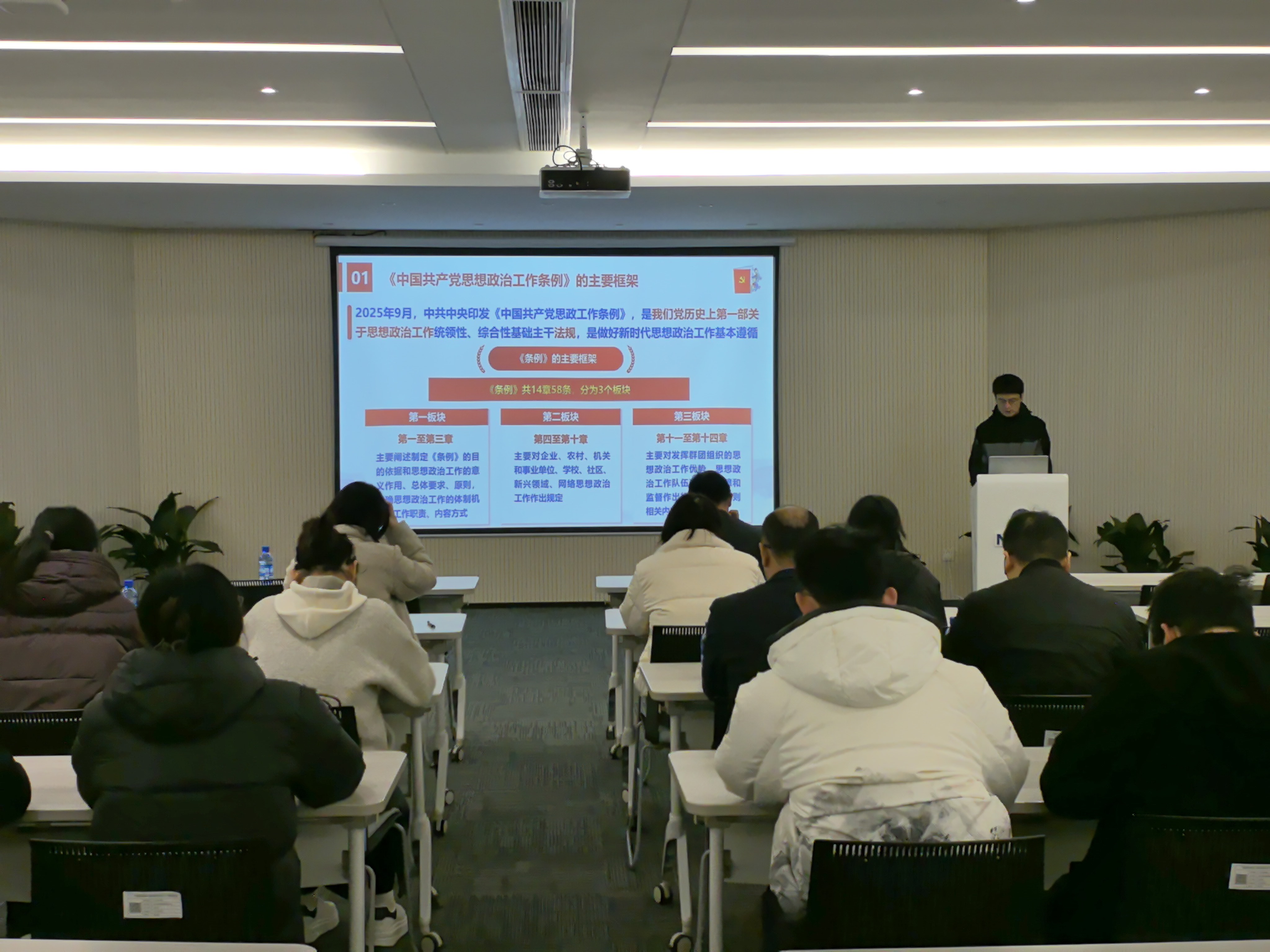 会上,青年委员杨科传达了党的二十届四中全会精神,号召党员同志切实把思想和行动统一到党中央决策部署上来。组织委员卢翔领学了《中国共产党思想政治工作条例》,强调要以条例为遵循,将思想政治建设融入科研攻关全过程,进一步筑牢思想根基。会上还集中学习了《习近平谈治国理政》第五卷内容。