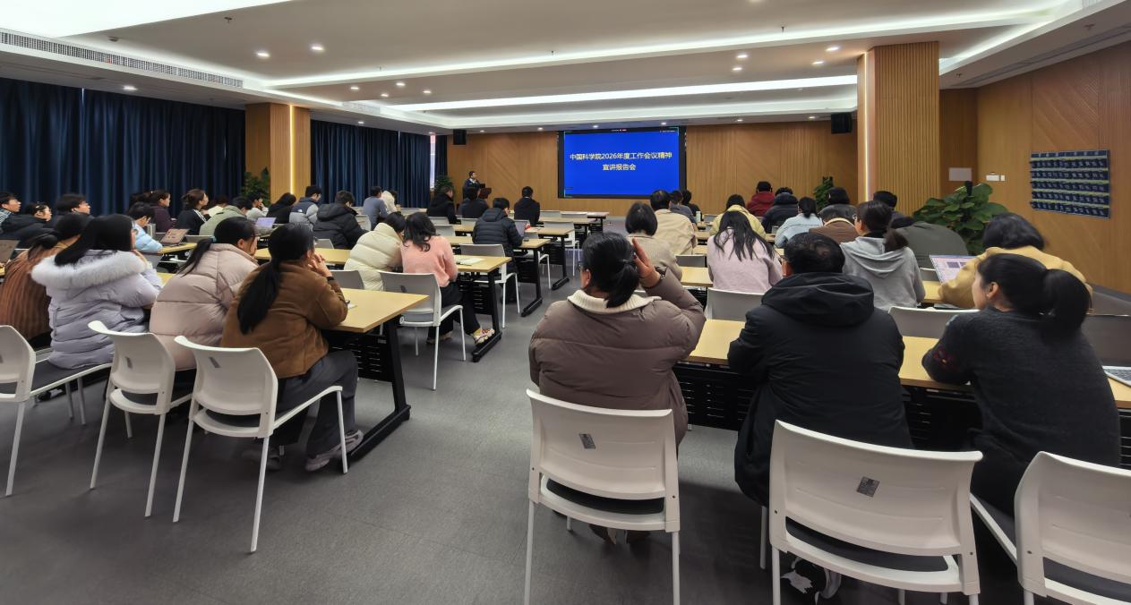 会上,党委委员吴爱国带领参会人员重点学习了中国科学院2026年度工作会议精神,全面回顾了“十四五”期间全院在改革创新发展中取得的显著成效,详细传达了全院2026年度重点工作安排,并结合实际,对研究所2026年度重点工作进行宣贯和动员部署。