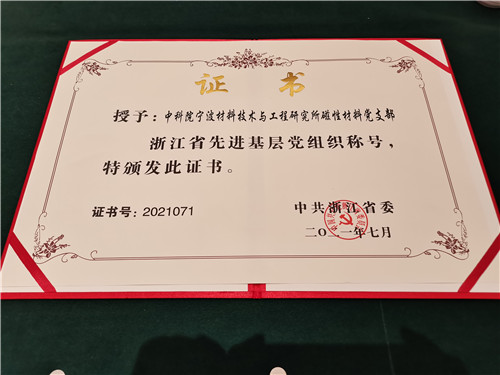 省委表彰!中科院宁波材料所磁性材料党支部获得浙江省“先进基层党组织”荣誉称号