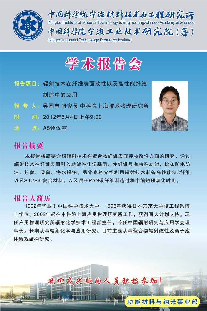 吴国忠:辐射技术在纤维表面改性以及高性能纤维制造中的应用