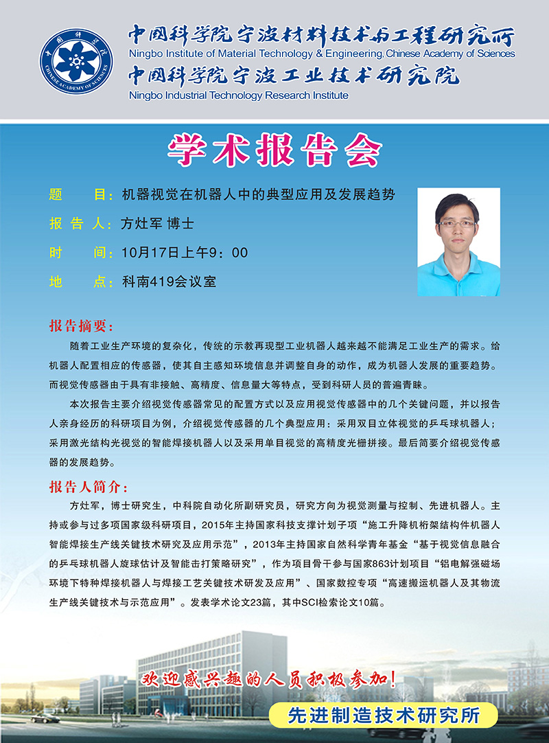 10月17日:方灶军:机器视觉在机器人中的典型应用及发展趋势