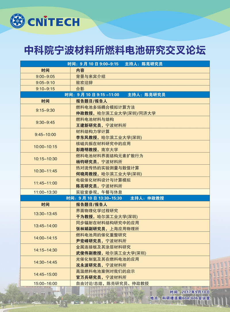 9月10日:中科院宁波材料所燃料电池研究交叉论坛
