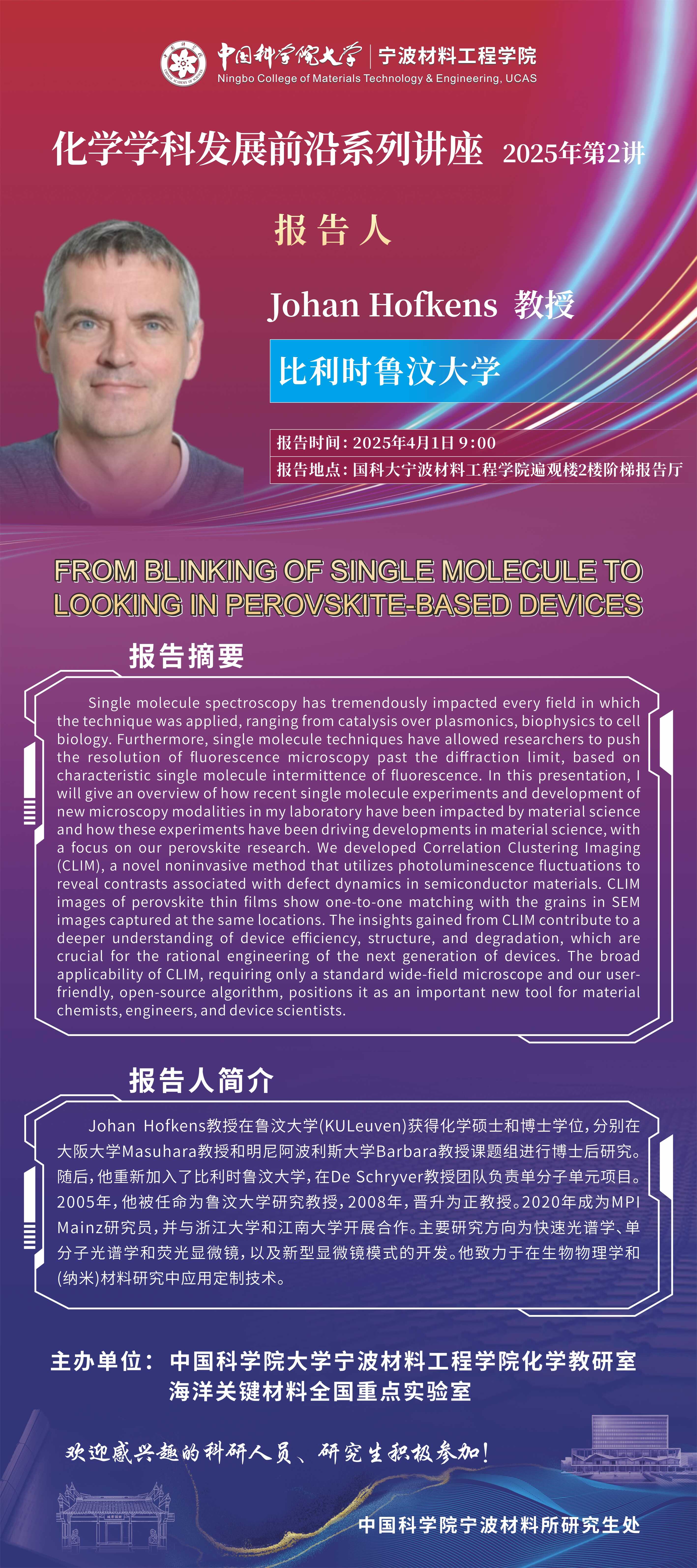 4月1日:Johan Hofkens:FROM BLINKING OF SINGLE MOLECULE TO LOOKING IN PEROVSKITE-BASED DEVICES 发布:2025-03-19 点赞: 字号:小 大 打印: