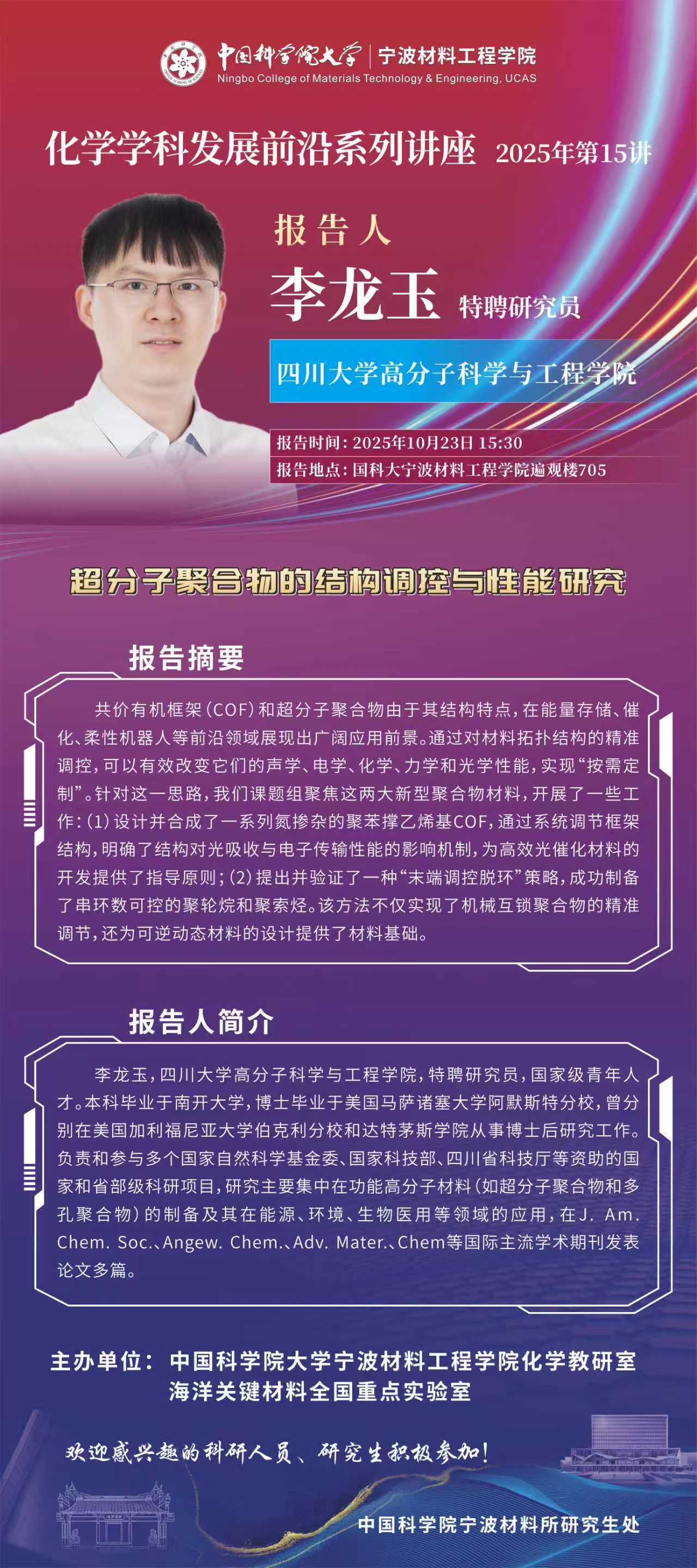 10月23日:李龙玉:超分子聚合物的结构调控与性能研究