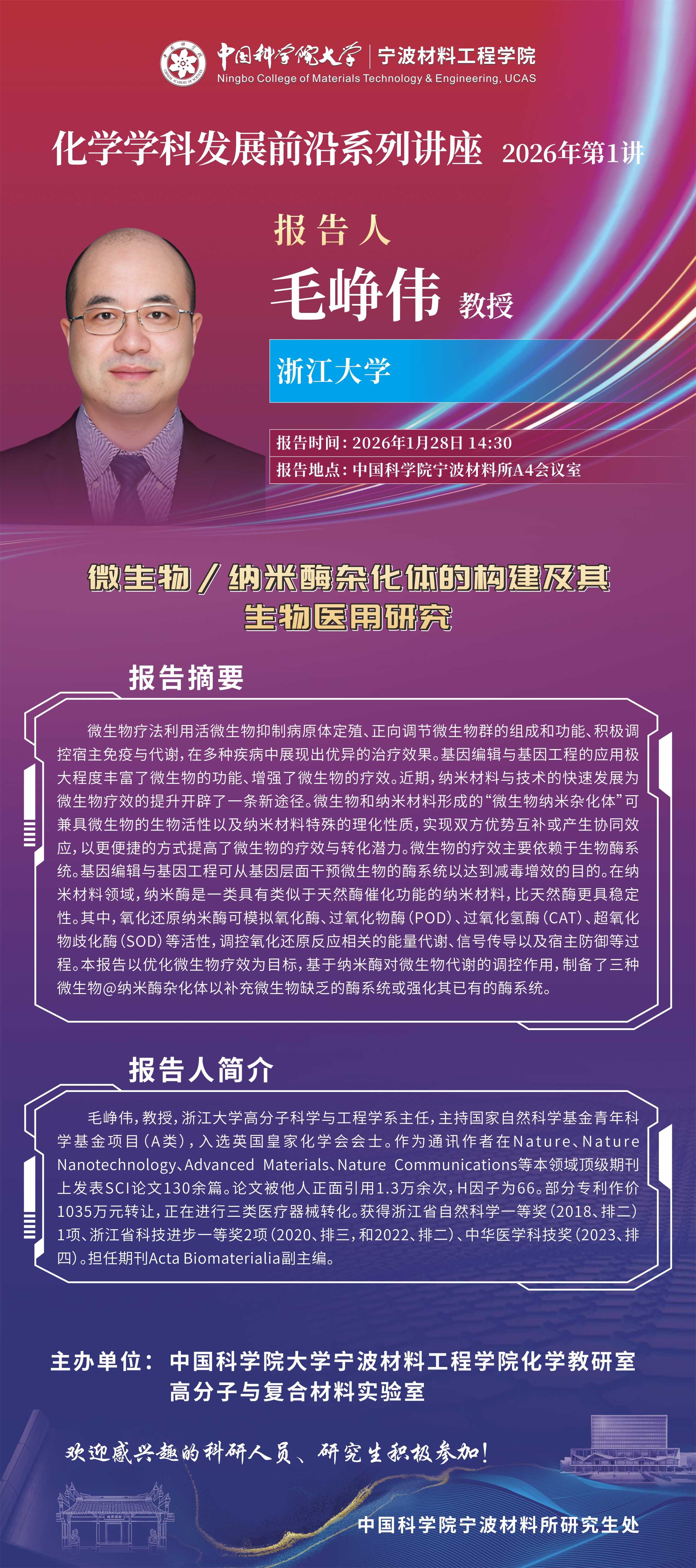 1月28日:毛峥伟 :微生物纳米酶杂化体的构建及其生物医用研究