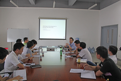 徐忠华在报告中介绍了全球能源化工的趋势和挑战,列举了包括深海油品、油砂、太阳能、有机光伏和生物能源等在内的应对能源危机的新能源。他指出,由于新能源的开发和利用会不可避免地导致环境污染,特别是CO2排放引起的温室效应,因而CO2捕集等现有的应对技术变得极为重要。报告内容丰富,讲解生动,大家受益颇多,对材料所的成果转移方向有所启发。报告会上,徐忠华同在场的研究人员就相关学术和技术问题进行了深入的交流和讨论。