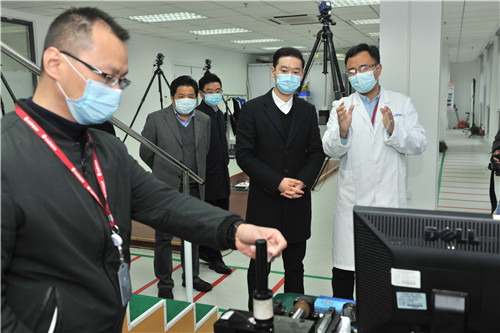 盛悠一行先后参观了医工所公共测试平台、先进涂层与增材制造工程中心、康复与辅助机器人实验室、医疗影像/眼科影像实验室、纳米生物材料实验室,听取了公共测试平台的运行情况以及各个团队科研方向与相关工作进展的介绍,并对相关科研成果转化的具体情况进行了深入了解。