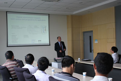Bertram教授在简要介绍了瑞士苏黎世联邦理工学院概况,包括历史沿革、办学规模、系所设置、以及诞生的著名人物等后,围绕有机场效应晶体管(OFETs)的界面问题,从电荷迁移率和陷阱能态调控两方面介绍了他的最新研究成果。并与科研人员以及研究生进行了互动交流,逐一解答了大家感兴趣的问题。