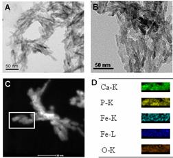 图2. (左)磁性纳米羟基磷灰石,(中)成骨细胞在纳米复合水凝胶上的形态,