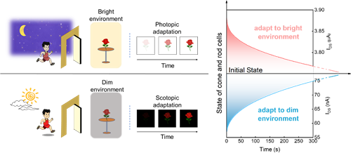 人眼明暗适应过程与氧化物光电薄膜晶体管光电流变化过程的类比演示