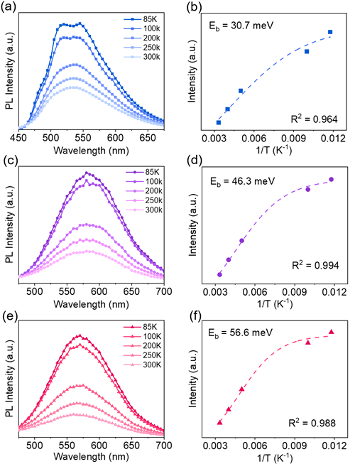 针对上述问题,中国科学院宁波材料技术与工程研究所界面功能高分子材料团队在张涛研究员的带领下,对sp2c-COFs材料的化学构筑策略、界面合成方法和前沿应用进行了深入研究(J. Am. Chem. Soc. 2022, 144, 13953;J. Am. Chem. Soc. 2023, 145, 5203;ACS Catal. 2023, 13, 1089;Chem. Mater. 2023, 35, 1594)。近日,该团队提出了一种噻二唑介导的羟醛缩聚反应用于构建噻二唑桥联的sp2c-COF(sp2c-COF-ST)(图1)。得益于全共轭的骨架和缺电的噻二唑内核,所合成的sp2c-COF-ST表现出优异的稳定性和光电化学性能(图2和图3)。例如,sp2c-COF-ST在强酸和强碱(12 M HCl和12 M NaOH)中浸泡24小时后仍可保留其有序结构(图2)。在可见光的辐照下,sp2c-COF-ST在0.3 V(vs RHE)的偏压下,表现出高达~14.5 A cm-2的光电流密度,远优于结构相似的亚胺键连接COF(imi-COF-SNNT ~ 4.9 A cm-2)和亚胺键及碳碳双键混合连接COF(mix-COF-SNT~9.5 A cm-2)(图3)。在进一步的光致发光测试和密度泛函计算中发现(图4),与mix-COF-SNT和imi-COF-SNNT相比,sp2c-COF-ST具有更小的激子结合能和有效质量,这表明sp2碳共轭的骨架促进了激子解离和载流子迁移,进而增强了光电化学性能。该工作通过噻二唑介导的羟醛缩聚反应拓展了sp2c-COFs体系,并为光电催化提供了富有潜力的有机半导体骨架材料。