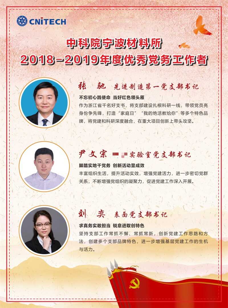 2018-2019年度优秀党务工作者:张驰、尹文宗、刘奕