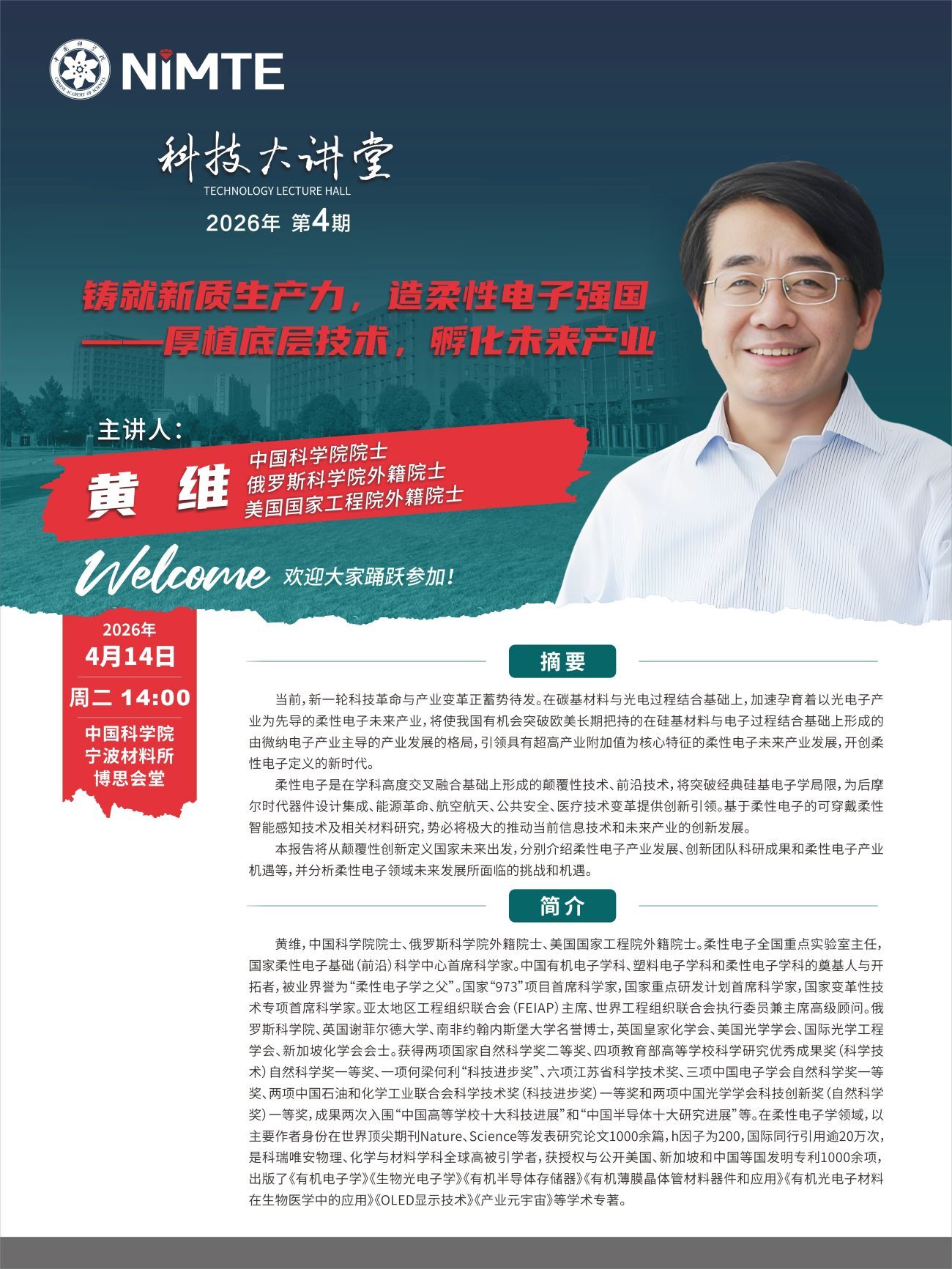 4月14日:黄维:铸就新质生产力,造柔性电子强国厚植底层技术,孵化未来产业