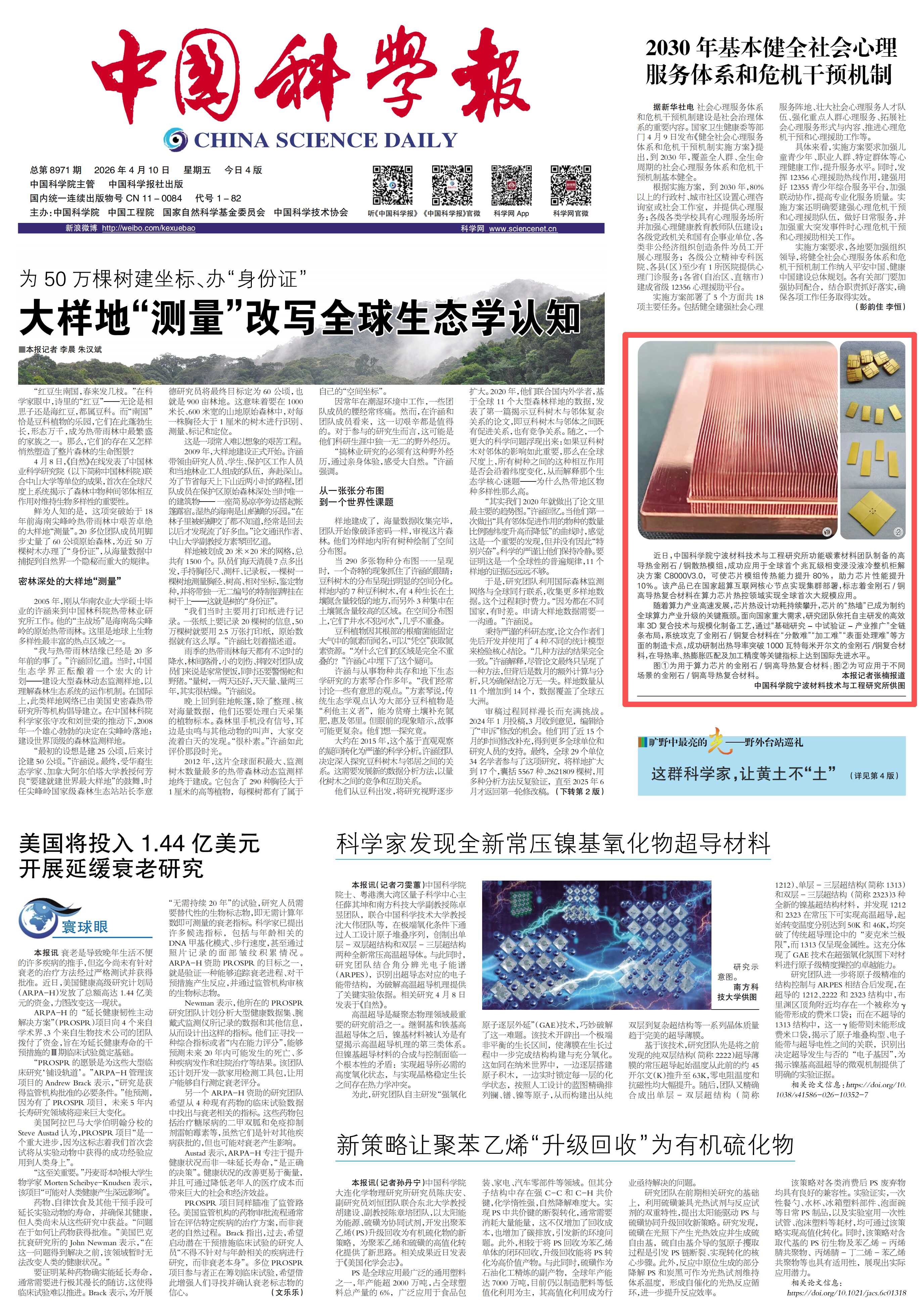 (原文发布于《中国科学报》2026-04-10 第1版 要闻)