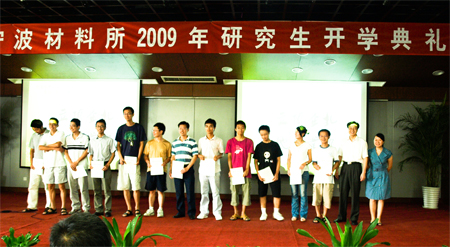 “入学阖院喜,启步九天欢”。在这金色的季节,每一个走进材料所的人都被科研楼前这幅引人注目的红色欢迎横幅所吸引。喜庆的欢迎横幅,以其独特的方式告知我们,2009年的材料所在科学发展观的指导下,按照“科研教育并举,成果人才并重”的原则,大力开展了研究生招生工作。全年共招收了72名研究生,其中学术型硕士研究生34名,专业学位硕士研究生15名,博士研究生23名。72名来自祖国各地的莘莘学子怀着成就自我,发展未来,服务祖国的美好憧憬,踏进了宁波材料所这一新时期的国立科研机构。