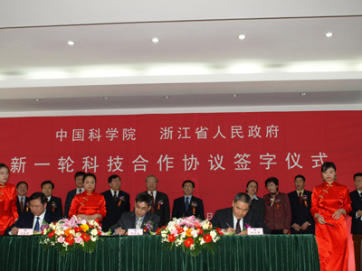 在签约仪式上,全国人大常委会副委员长、中科院院长路甬祥,浙江省委书记、省人大常委会主任赵洪祝分别作了重要讲话。