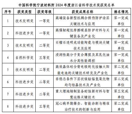省奖+8! 宁波材料所8项成果获2024年度浙江省科学技术奖 获奖数量创历史新高